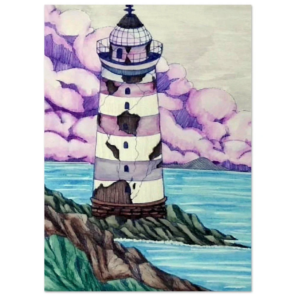 Art Prints › Inktense Lighthouse Inktense Lighthouse from $15.30 Inktense Lighthouse was drawn in 2025 and colored using water-soluble Derwent Inktense Watercolor Pencils. The print is made on archival paper. Inktense Lighthouse was drawn in 2025 and colored using water-soluble Derwent Inktense Watercolor Pencils. The print is made on archival paper. Size: Select Size 13x18 cm / 5x7″ 27x35 cm / 11x14″ 45x60 cm / 18x24″ 60x80 cm / 24x32″ Add To Cart Added!